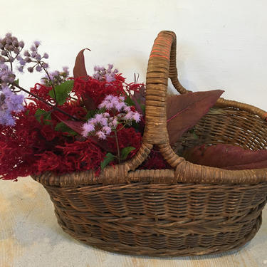 Vintage Wicker Gathering Basket Rustic Wicker Basket Large Woven Flower Luckduck Atlanta Ga